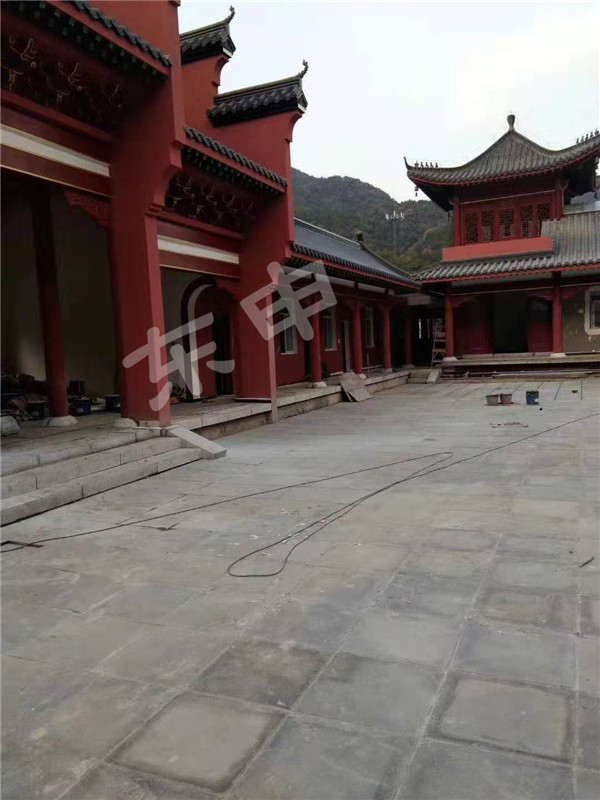 2019年12月2日湖北黃梅縣老祖寺掛笠庵整體屋面全部采用東申仿古金屬瓦裝飾屋面;3#分體瓦,面積約1061.7平方米;整體外觀質感亮麗,彰顯高端氣質;